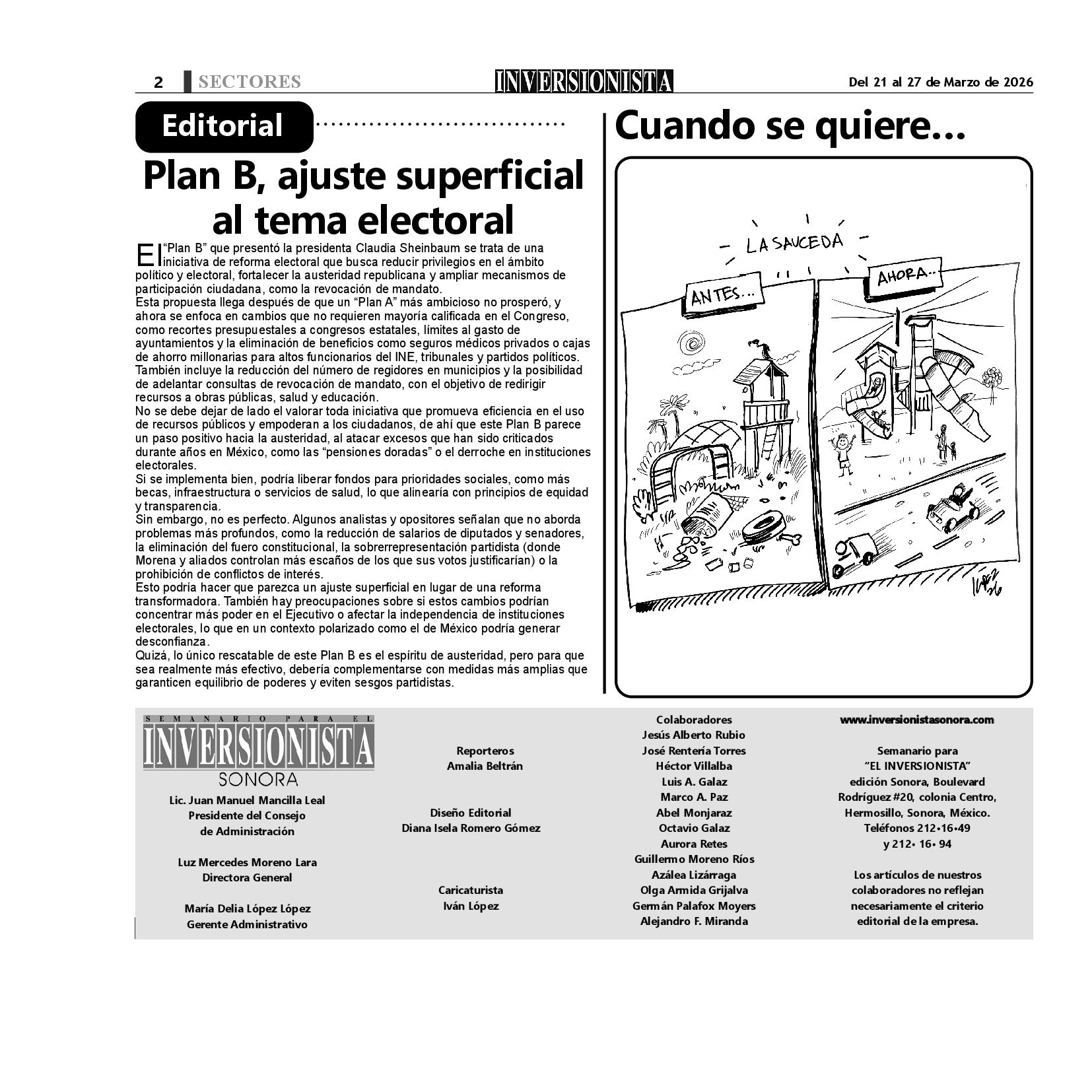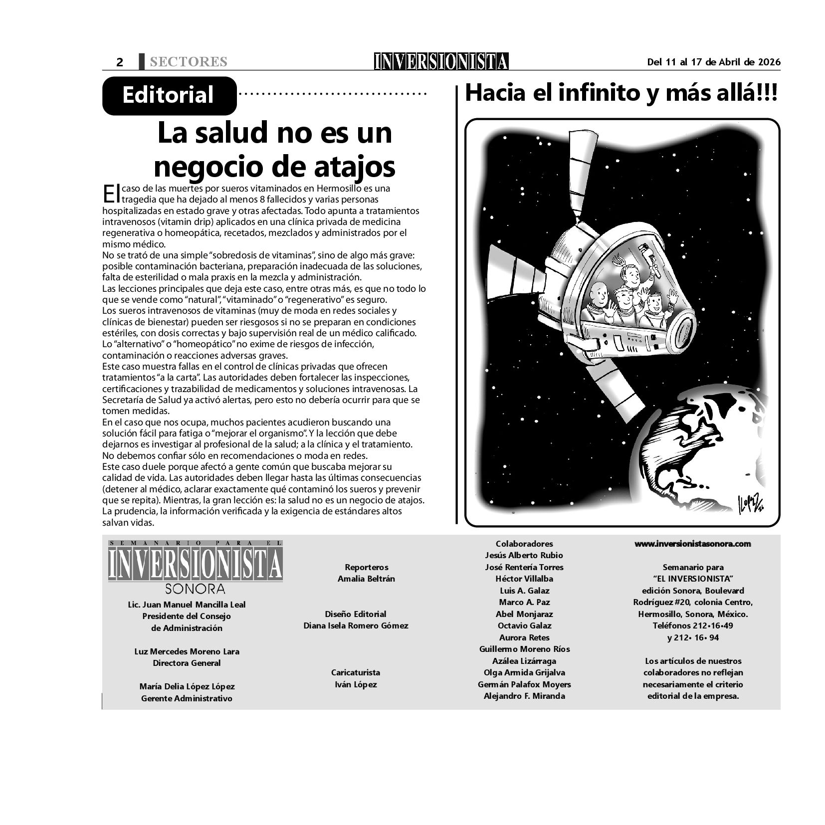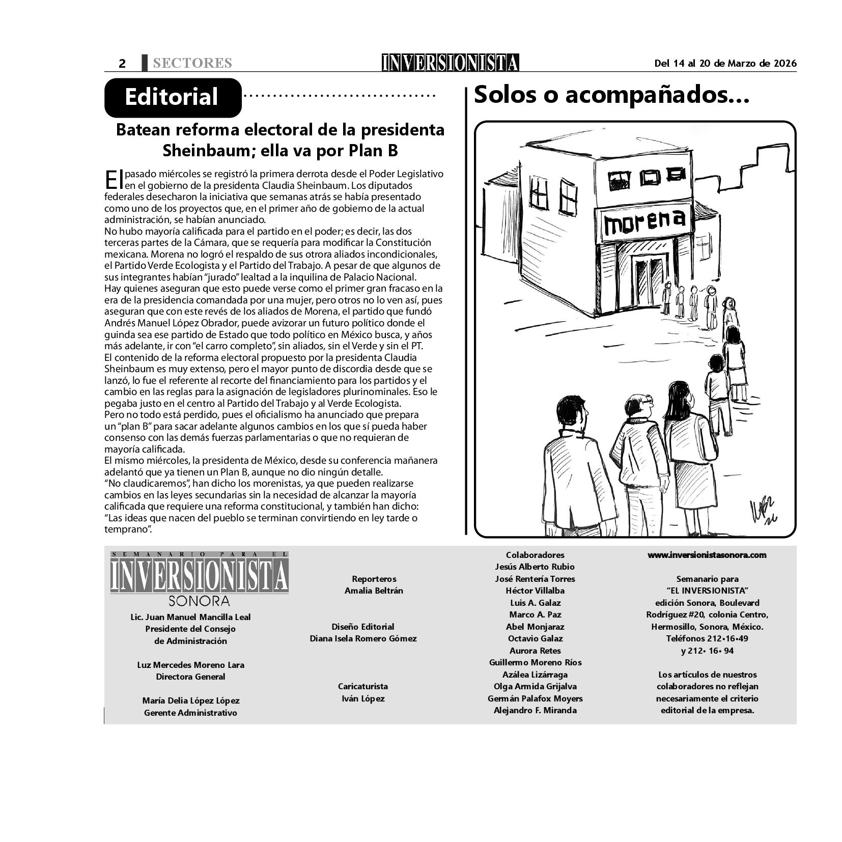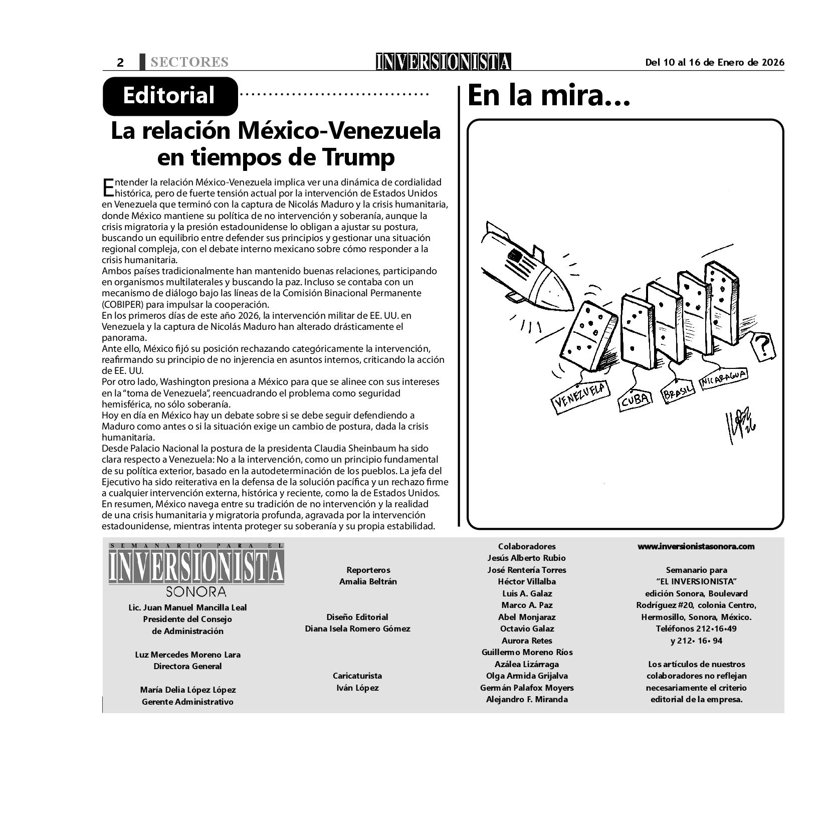 Todos los derechos reservados. Semanario para "EL INVERSIONISTA" edición Sonora, Boulevard Rodríguez #20, colonia Centro, Hermosillo, Sonora, México. Teléfonos 6622 121649 y 6622 121694. Contacto: contacto@inversionistasonora.com