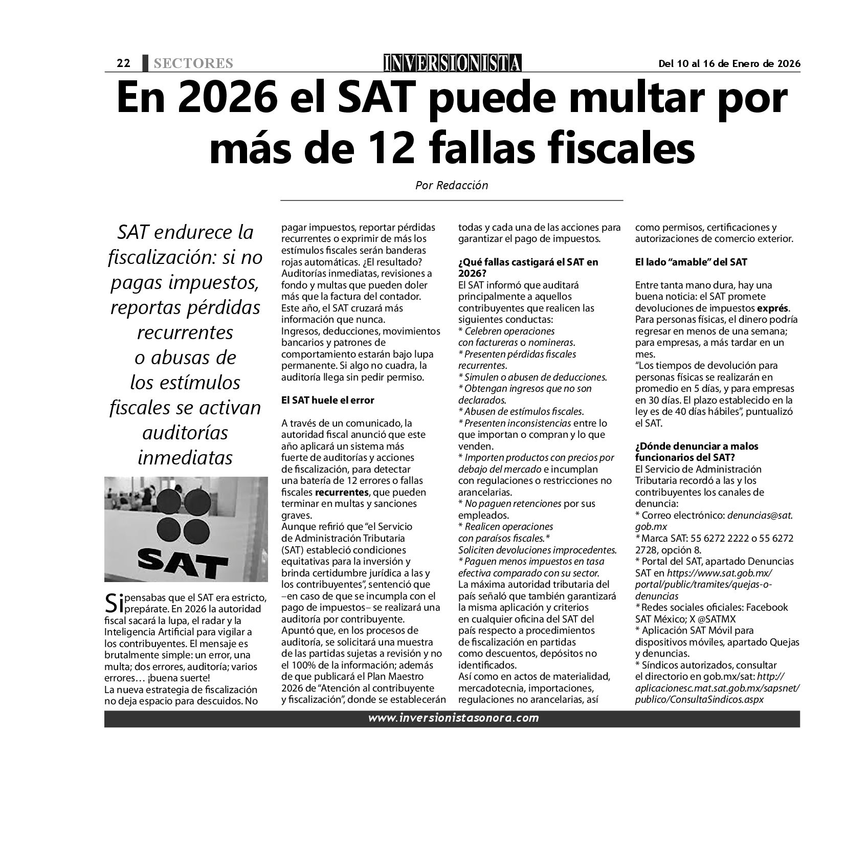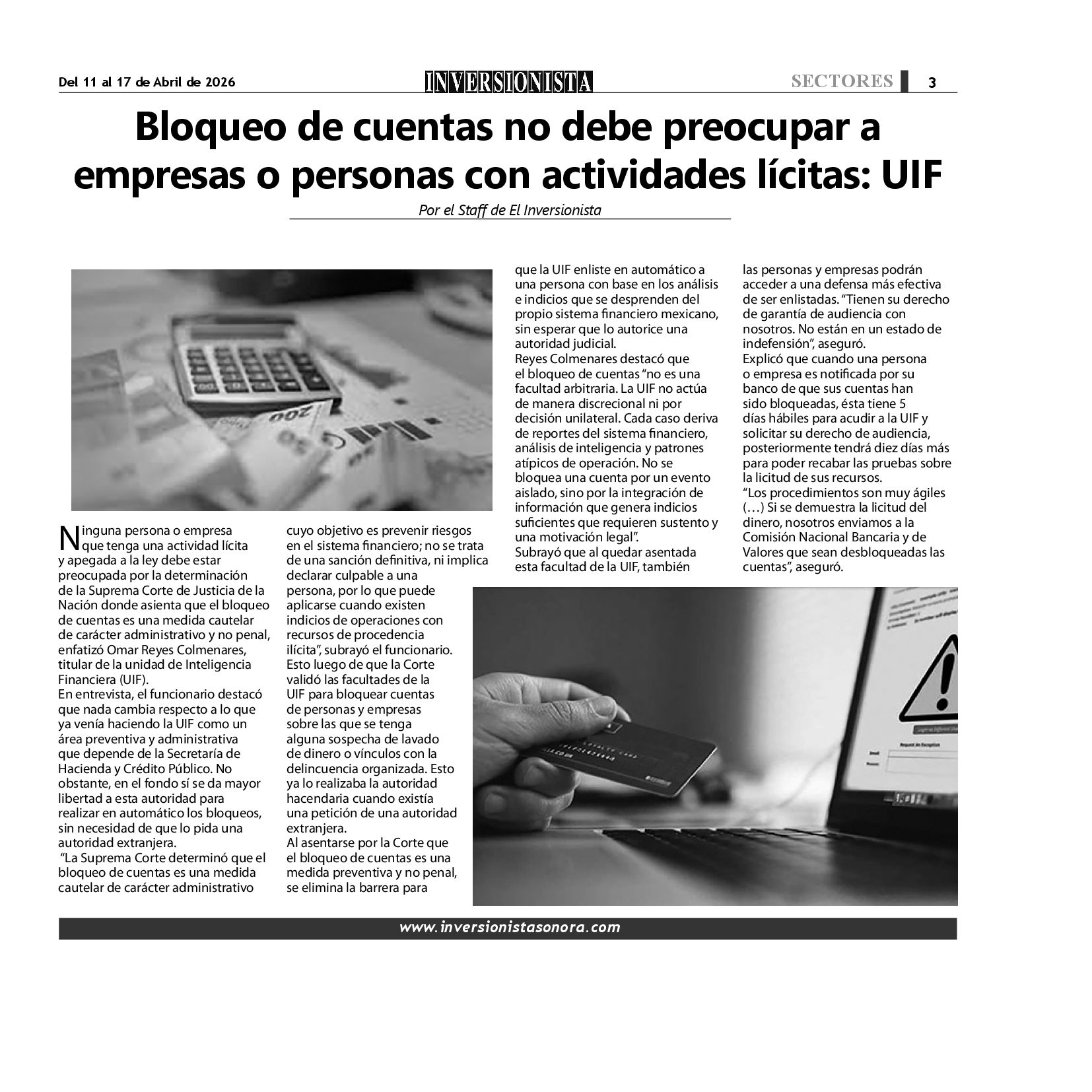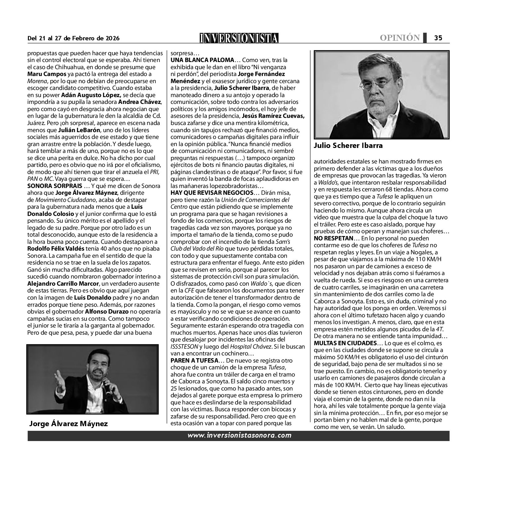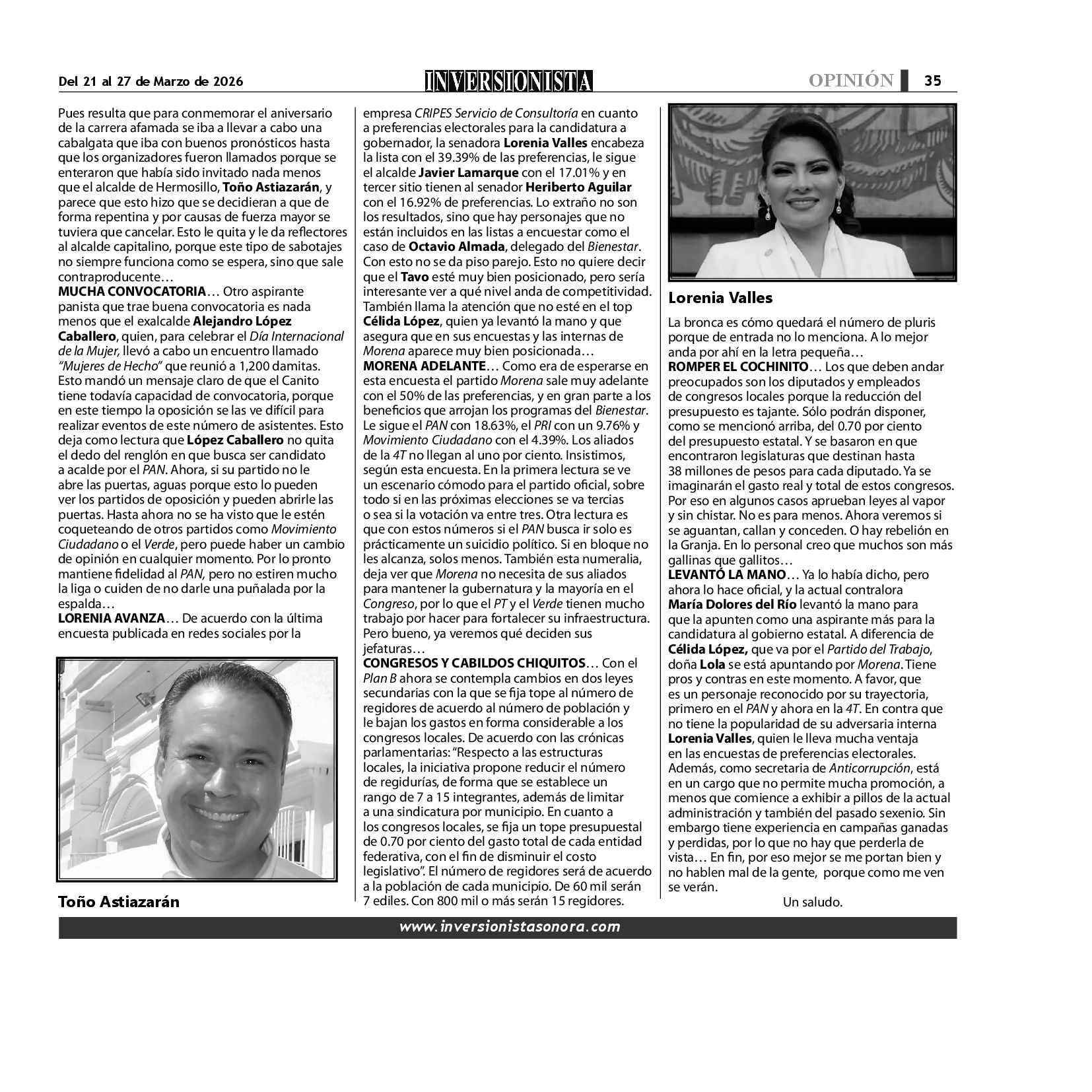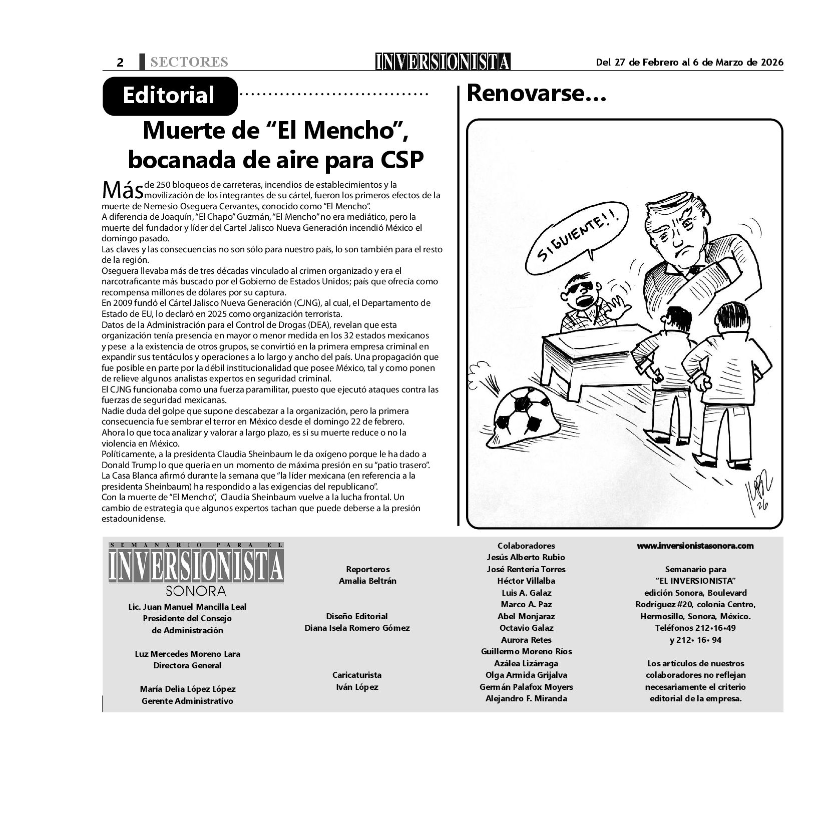 Todos los derechos reservados. Semanario para "EL INVERSIONISTA" edición Sonora, Boulevard Rodríguez #20, colonia Centro, Hermosillo, Sonora, México. Teléfonos 6622 121649 y 6622 121694. Contacto: contacto@inversionistasonora.com