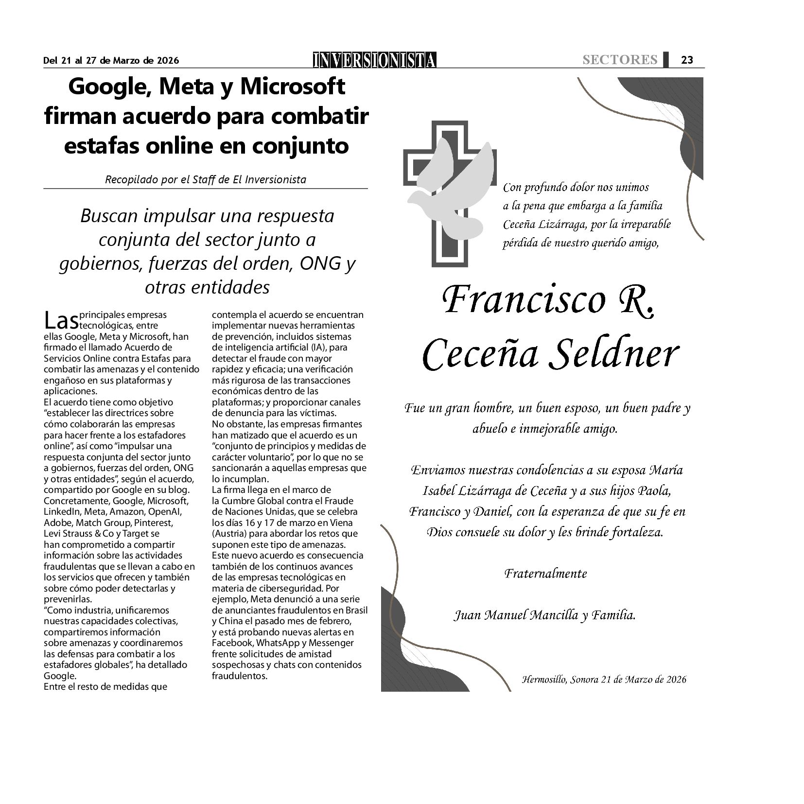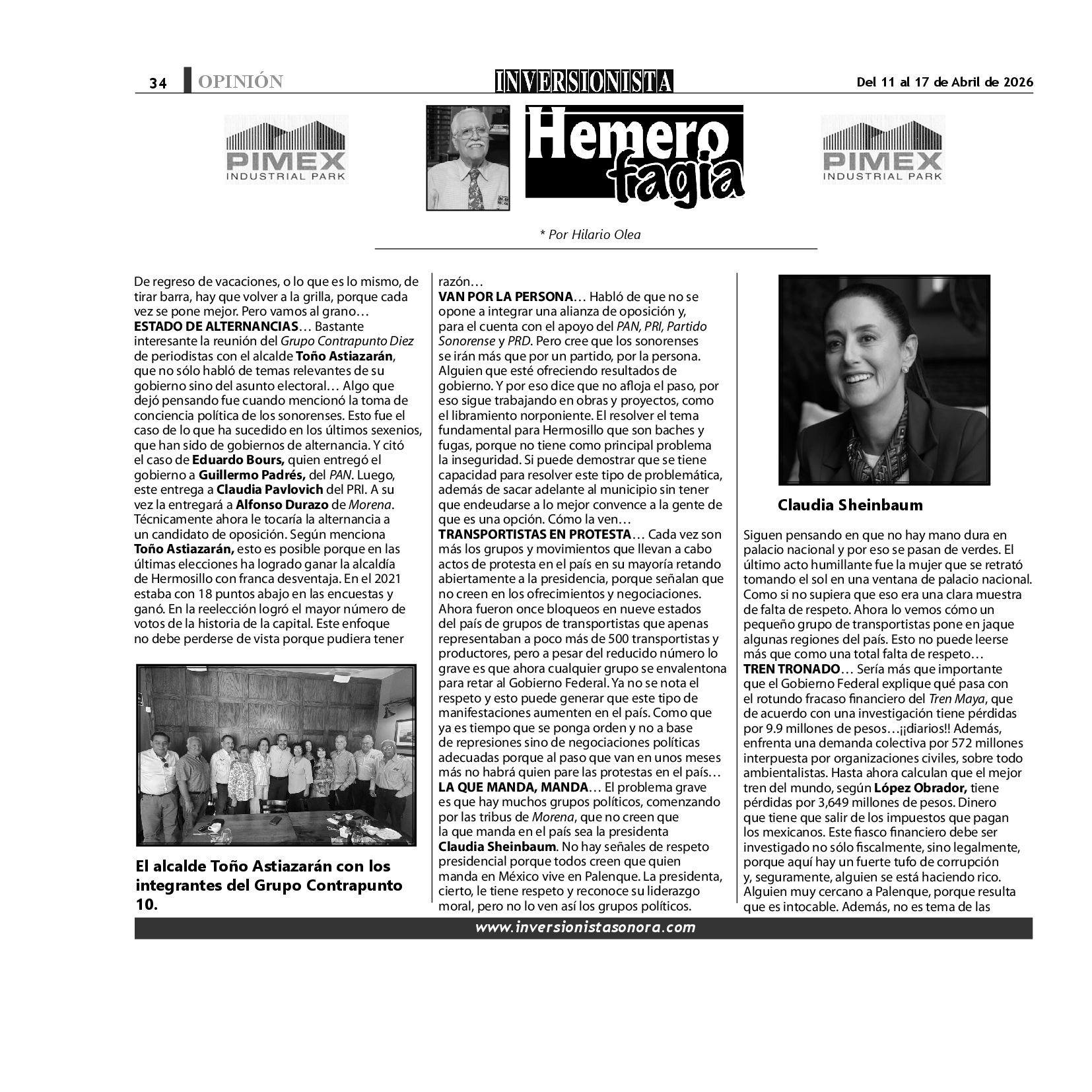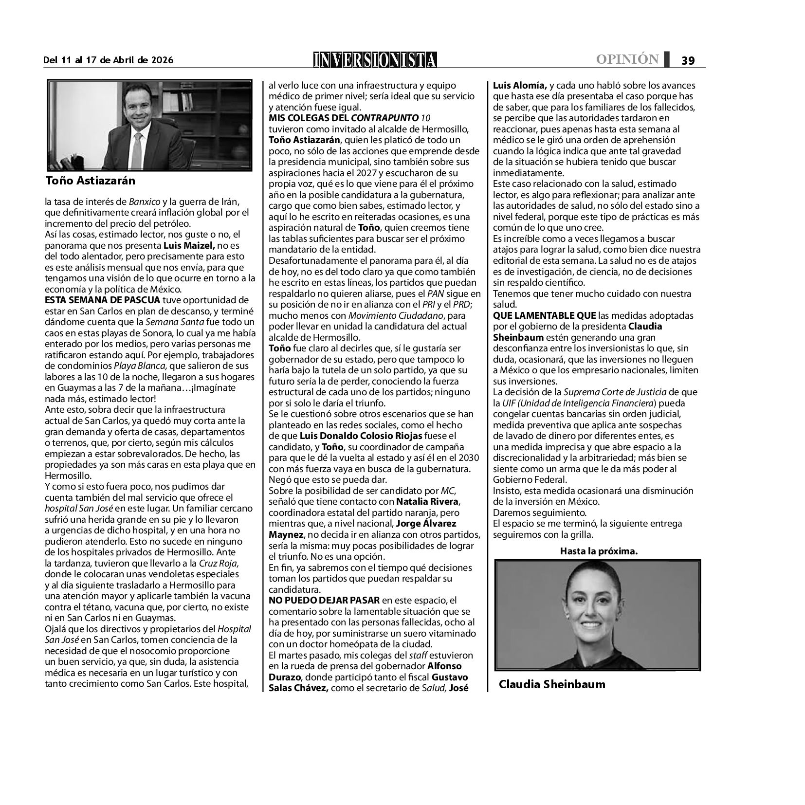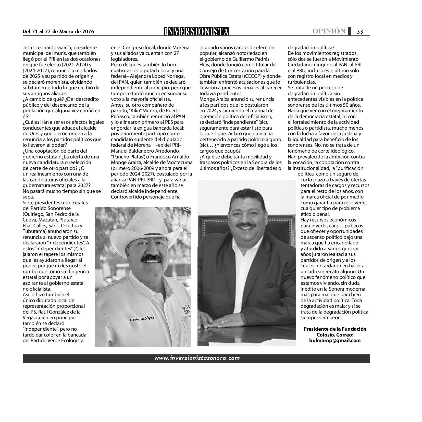 Todos los derechos reservados. Semanario para "EL INVERSIONISTA" edición Sonora, Boulevard Rodríguez #20, colonia Centro, Hermosillo, Sonora, México. Teléfonos 6622 121649 y 6622 121694. Contacto: contacto@inversionistasonora.com