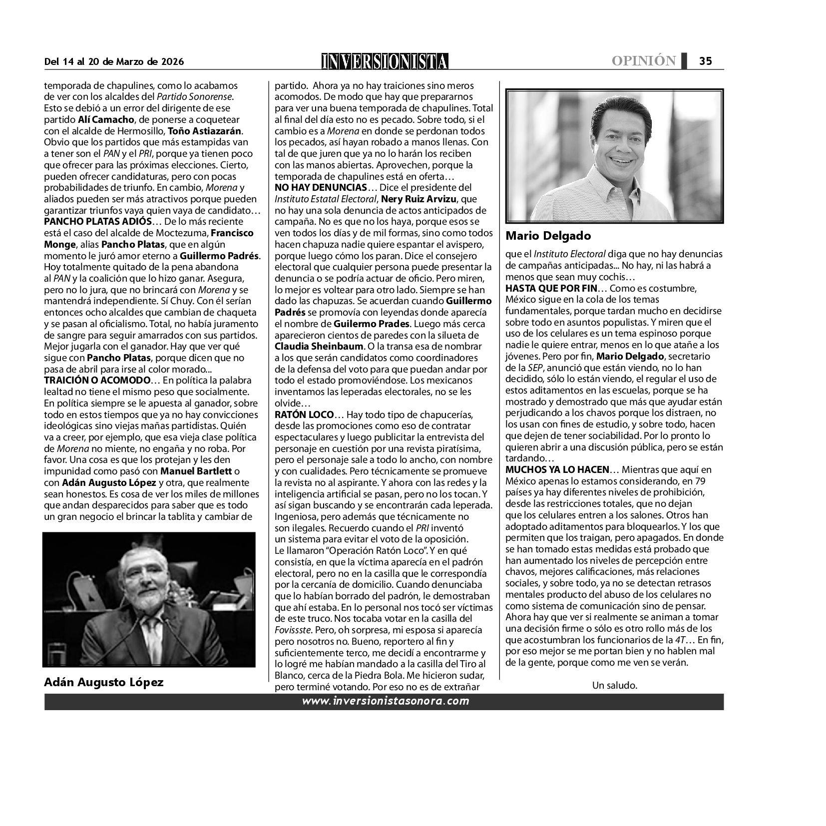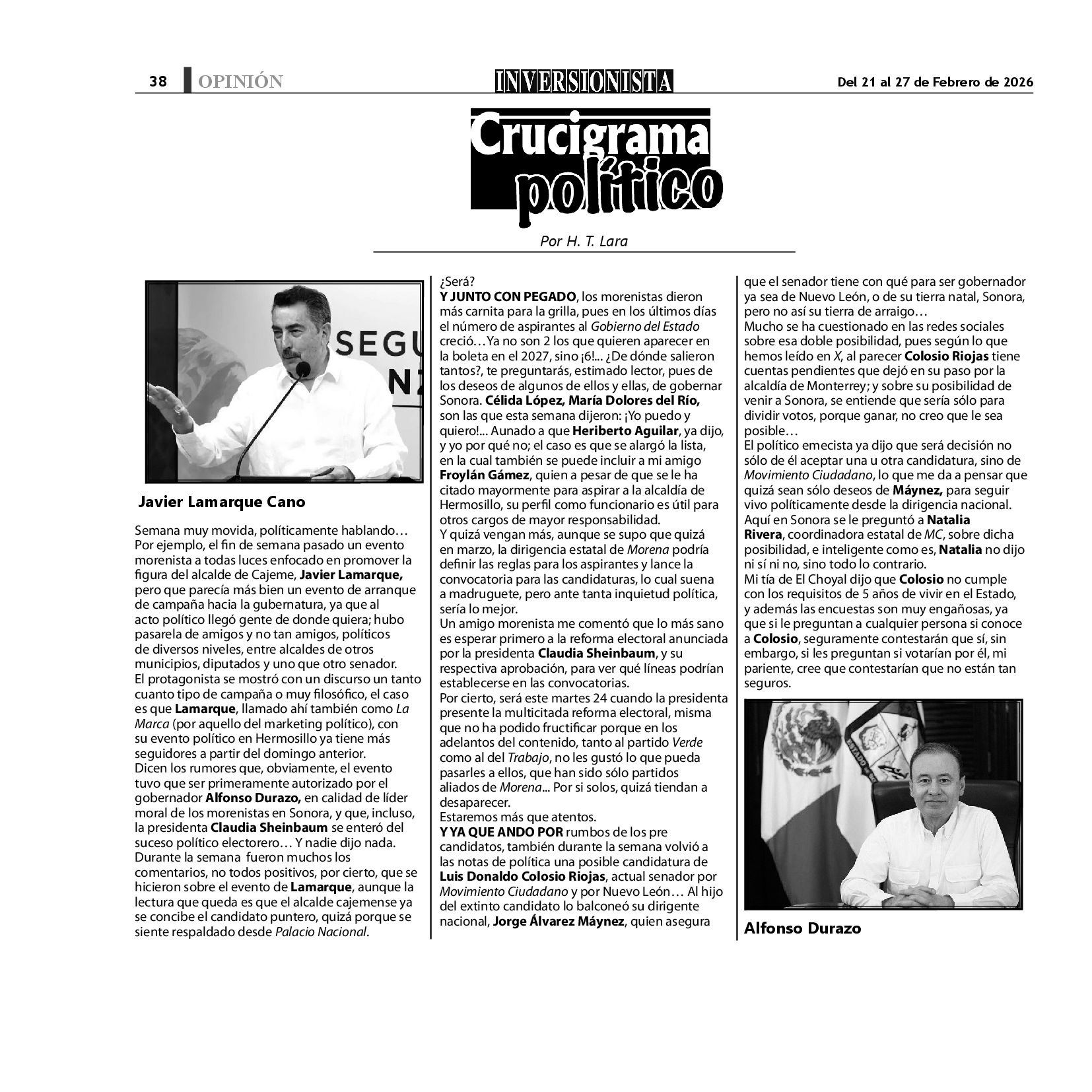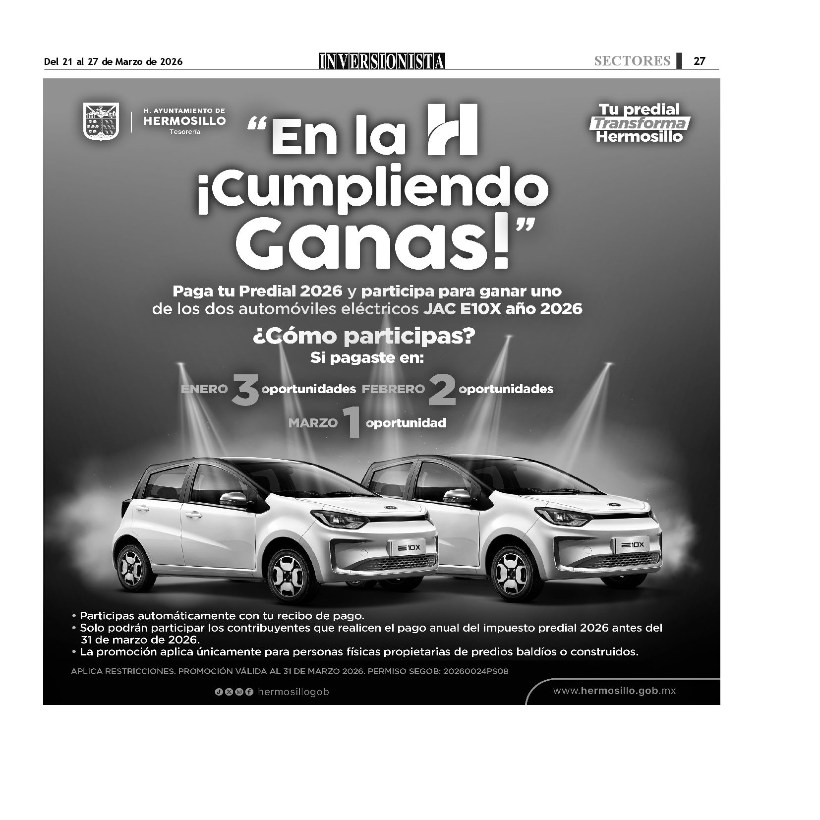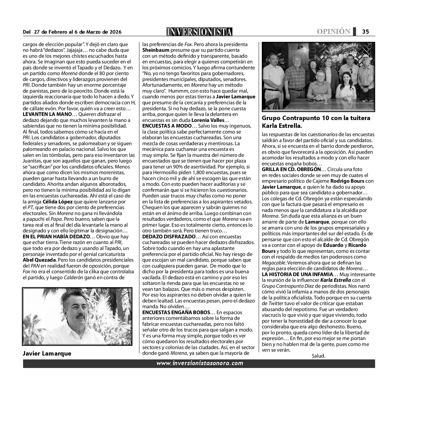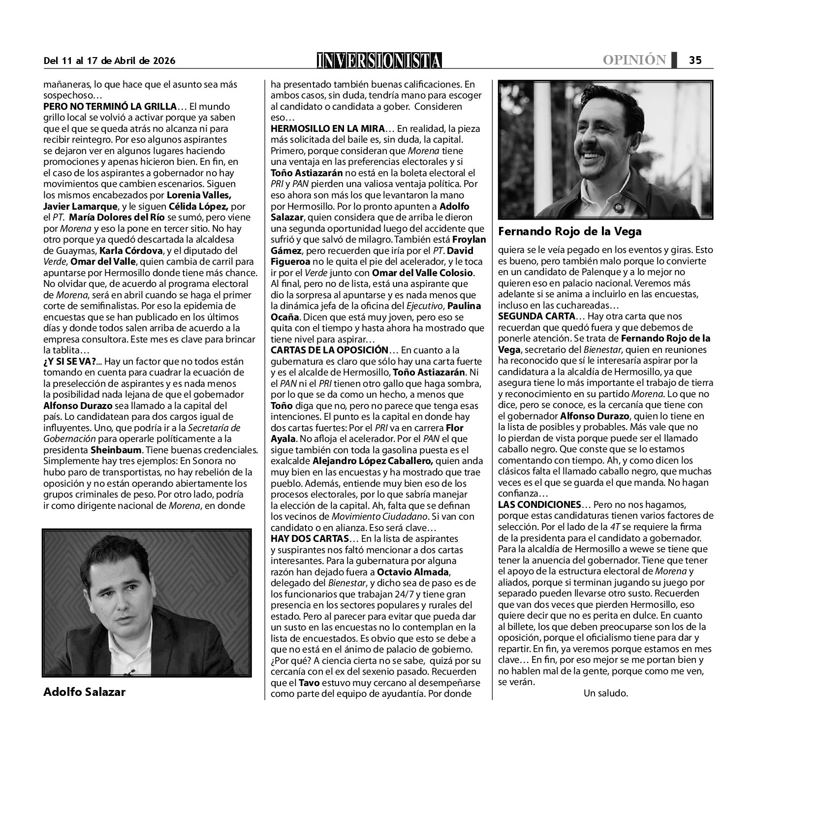 Todos los derechos reservados. Semanario para "EL INVERSIONISTA" edición Sonora, Boulevard Rodríguez #20, colonia Centro, Hermosillo, Sonora, México. Teléfonos 6622 121649 y 6622 121694. Contacto: contacto@inversionistasonora.com