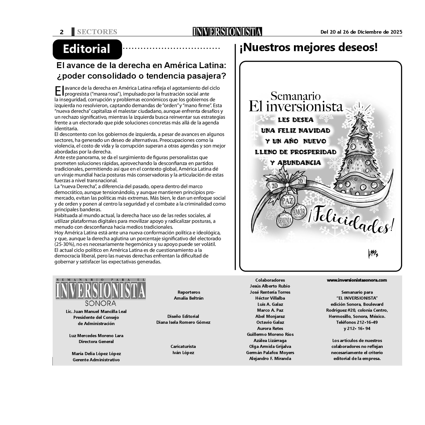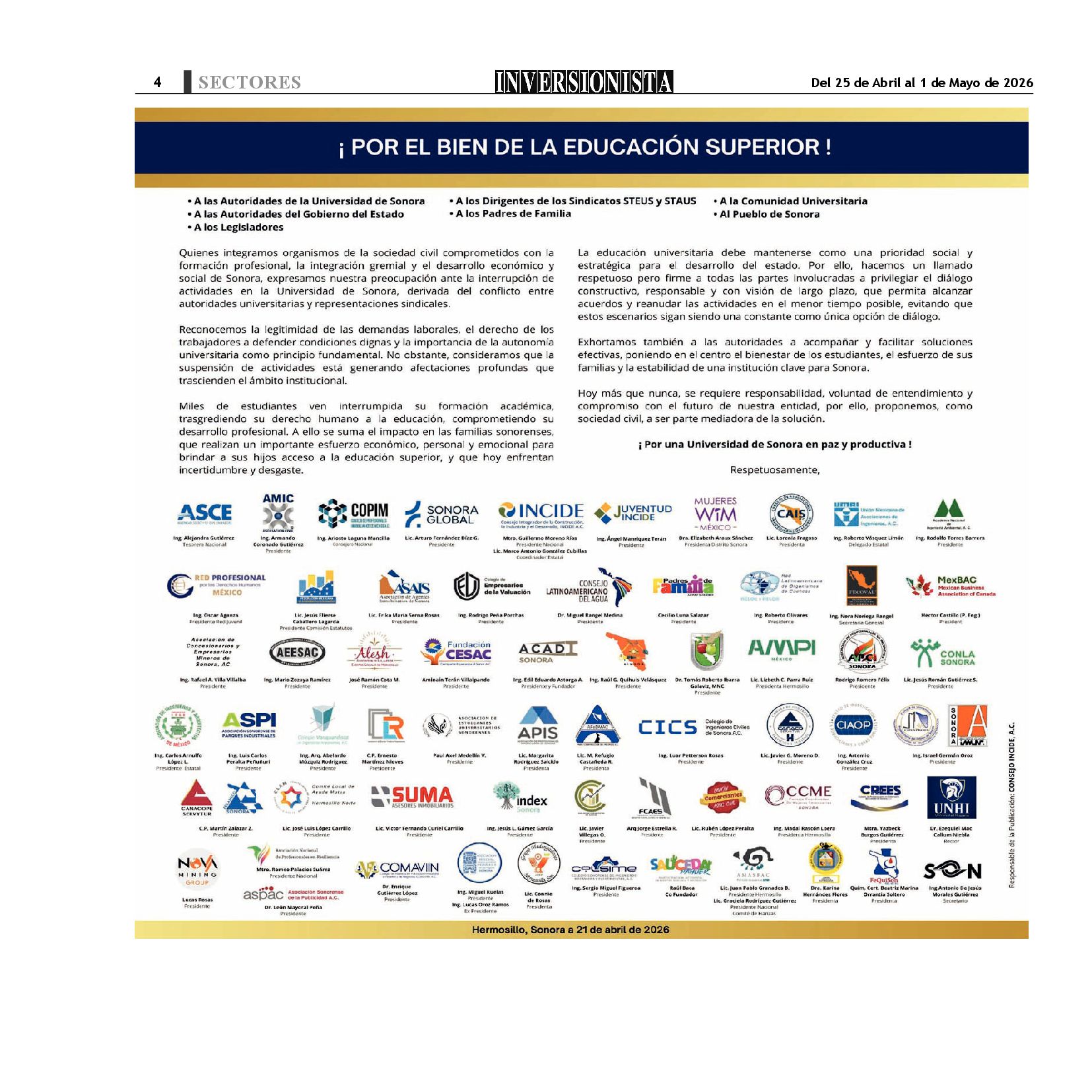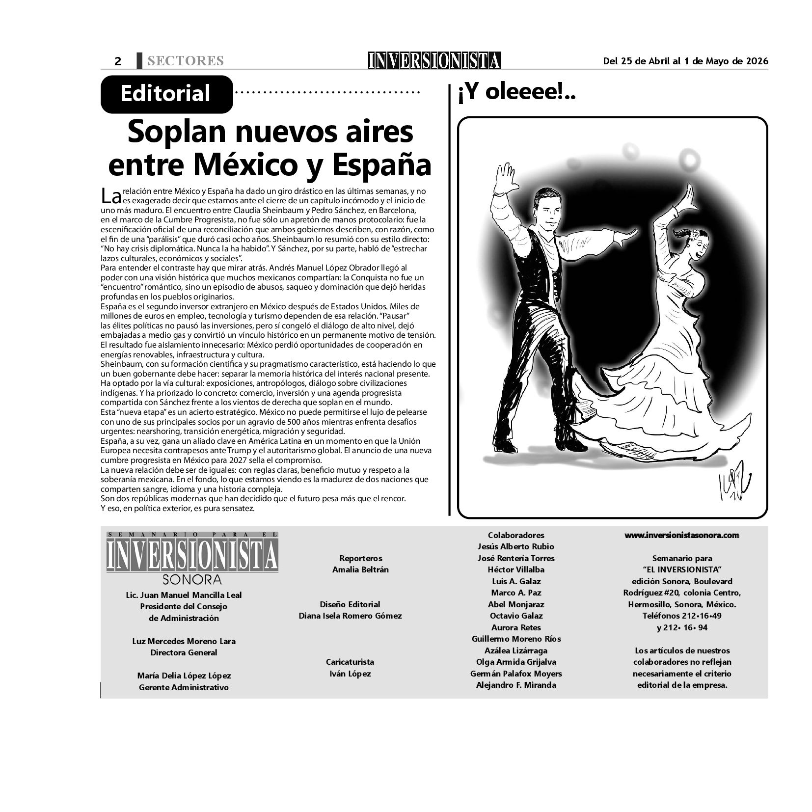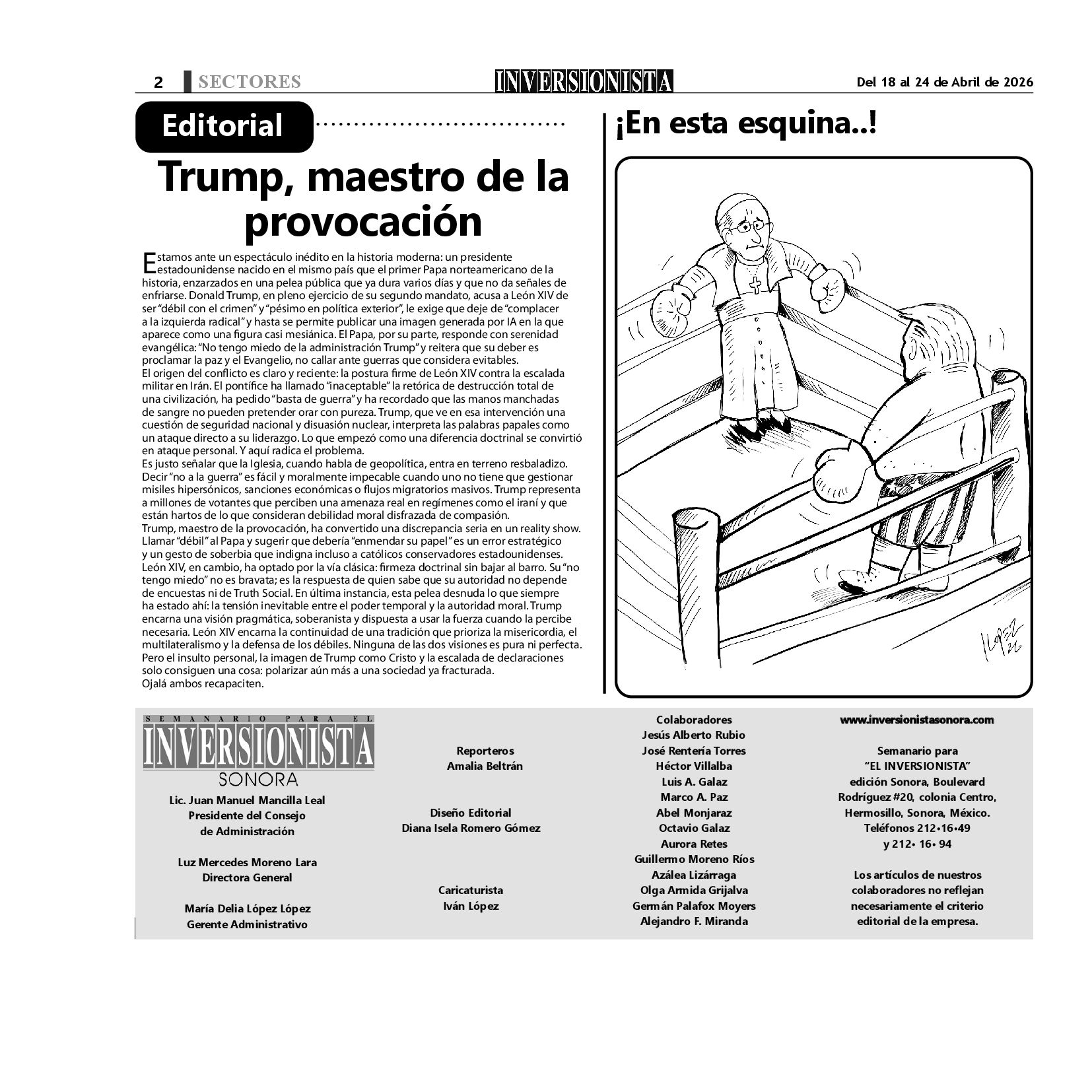 Todos los derechos reservados. Semanario para "EL INVERSIONISTA" edición Sonora, Boulevard Rodríguez #20, colonia Centro, Hermosillo, Sonora, México. Teléfonos 6622 121649 y 6622 121694. Contacto: contacto@inversionistasonora.com