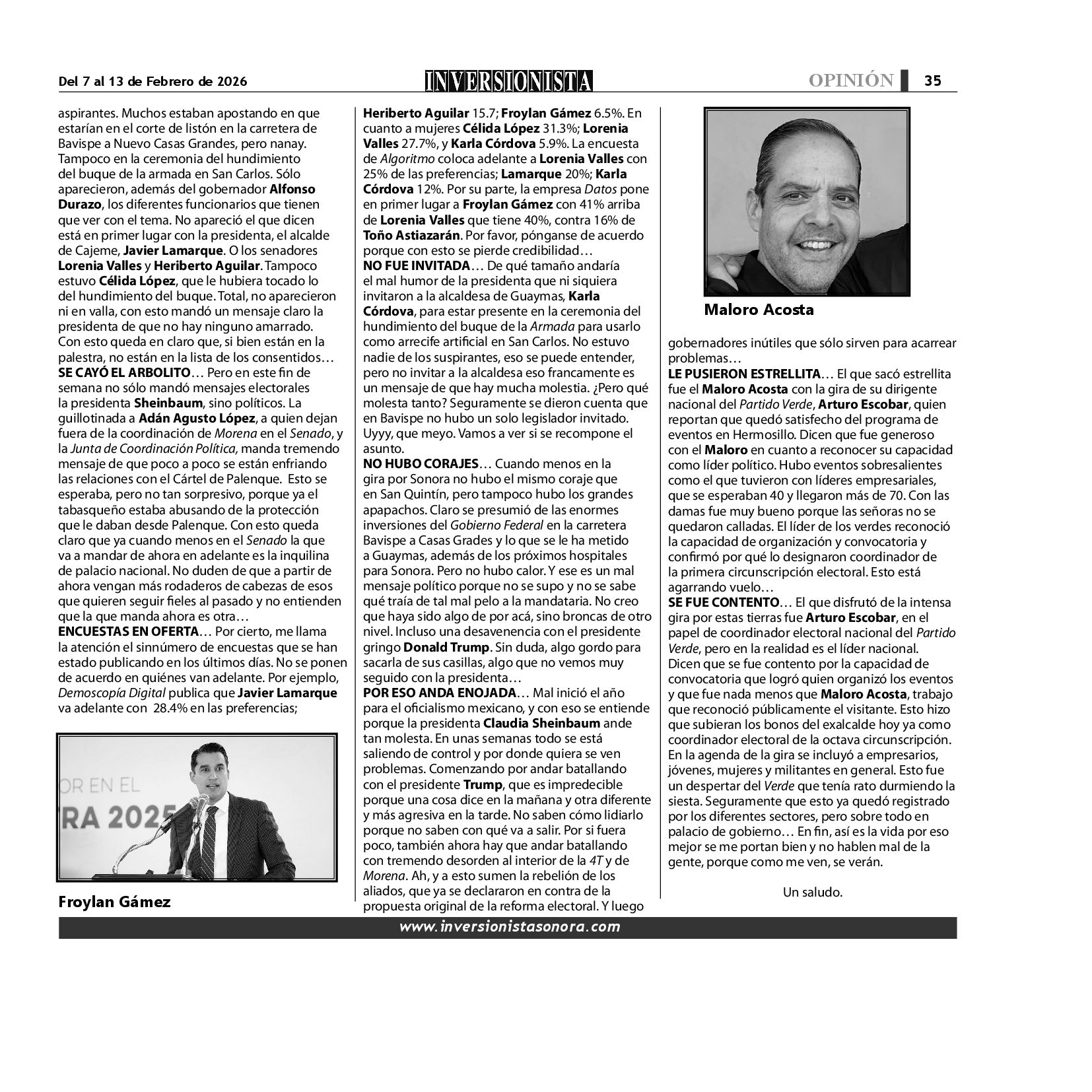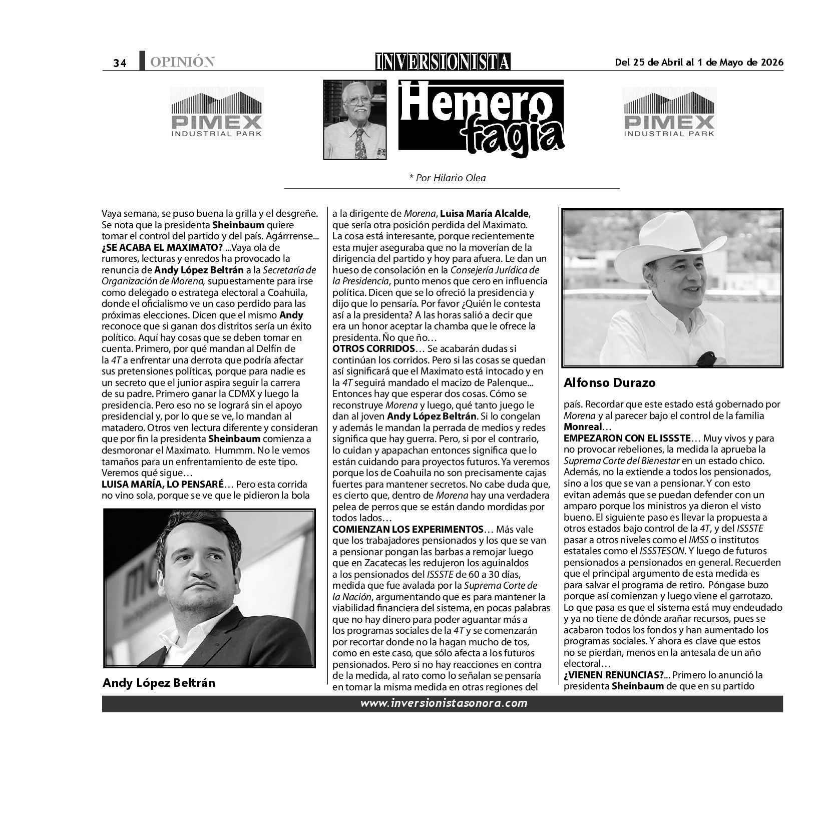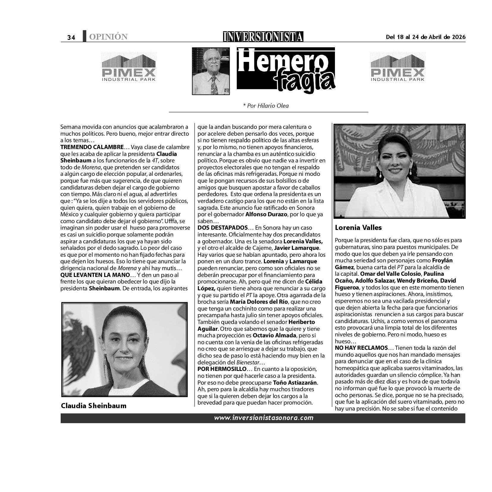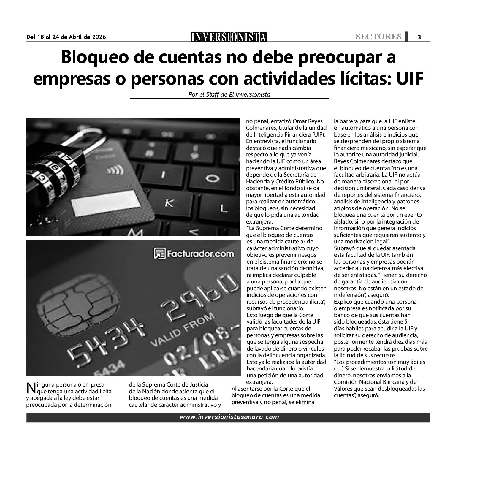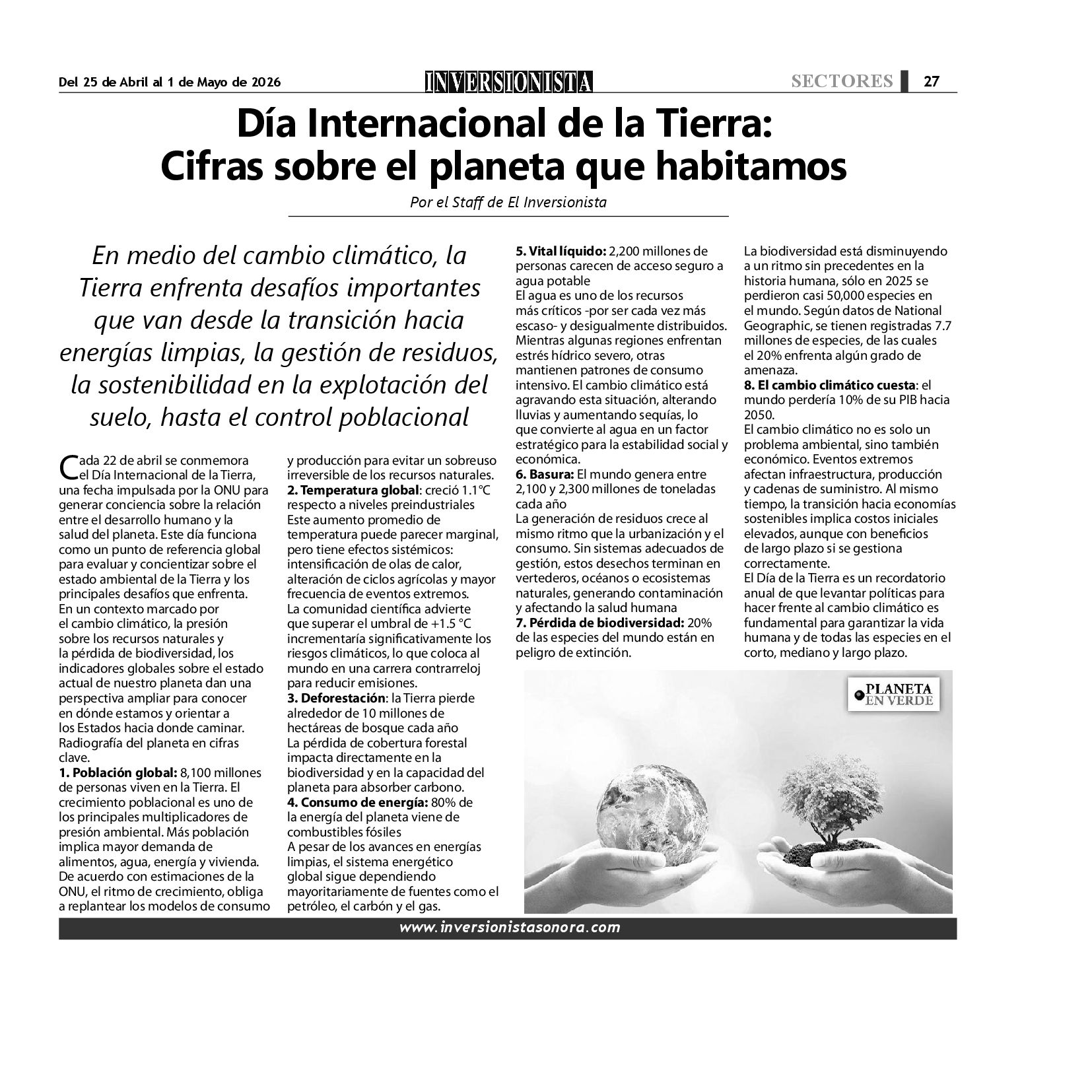 Todos los derechos reservados. Semanario para "EL INVERSIONISTA" edición Sonora, Boulevard Rodríguez #20, colonia Centro, Hermosillo, Sonora, México. Teléfonos 6622 121649 y 6622 121694. Contacto: contacto@inversionistasonora.com