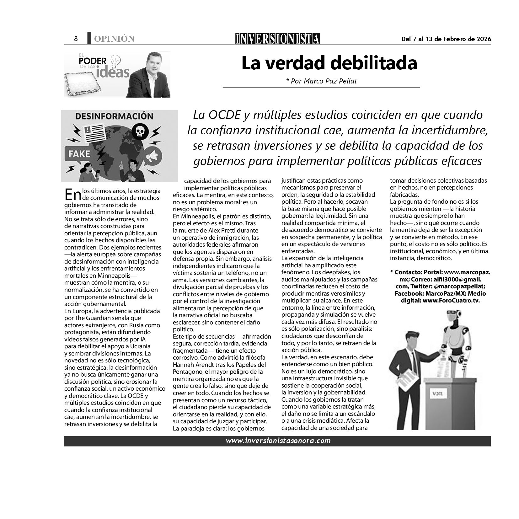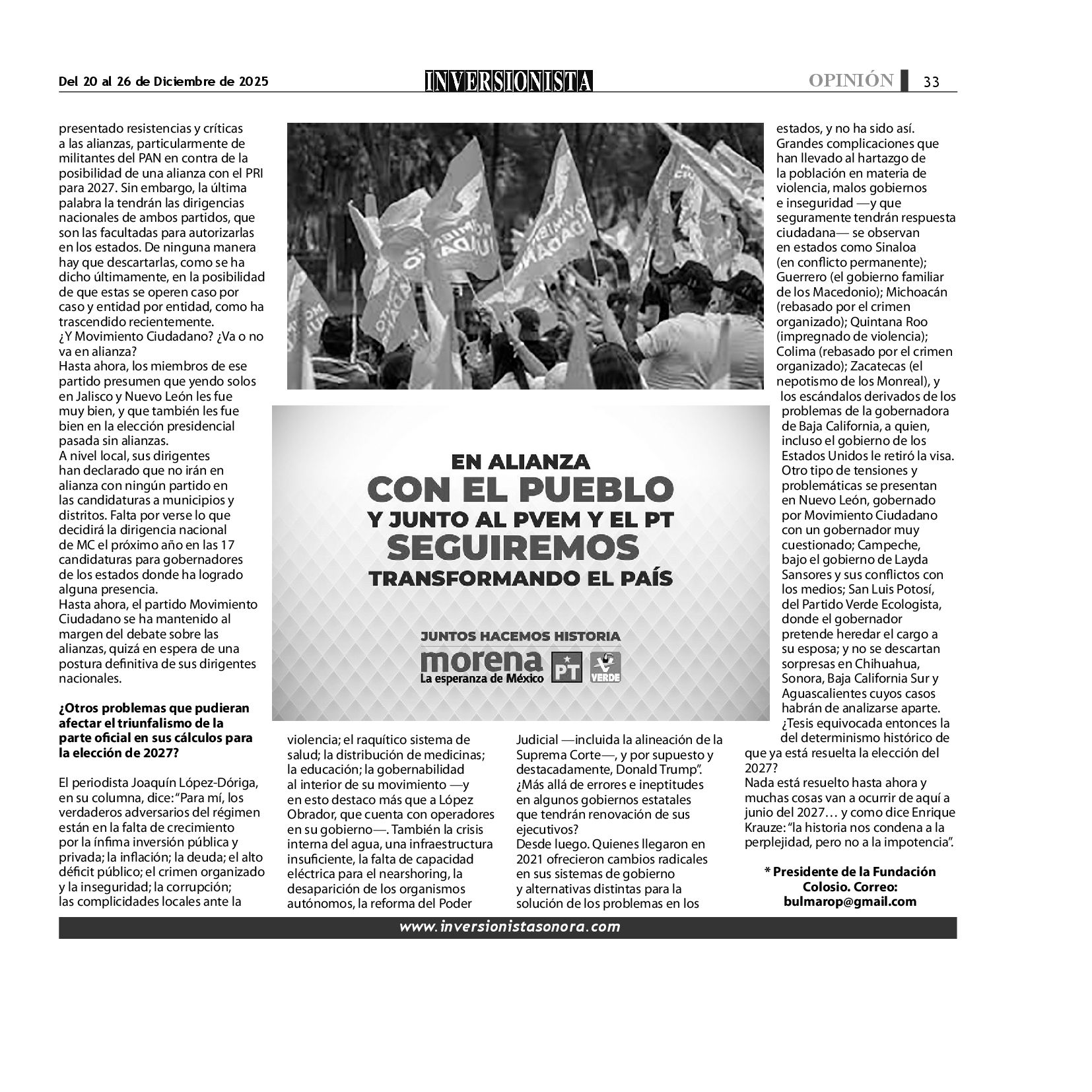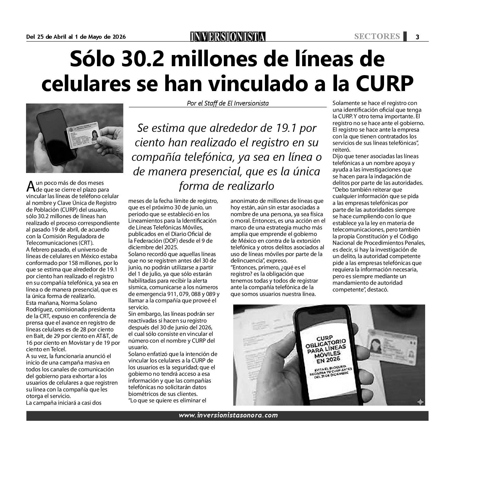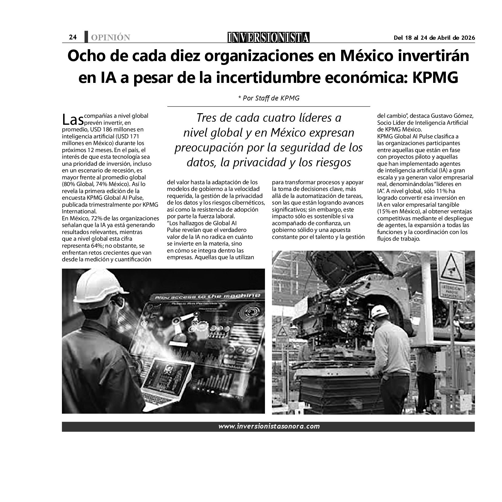 Todos los derechos reservados. Semanario para "EL INVERSIONISTA" edición Sonora, Boulevard Rodríguez #20, colonia Centro, Hermosillo, Sonora, México. Teléfonos 6622 121649 y 6622 121694. Contacto: contacto@inversionistasonora.com