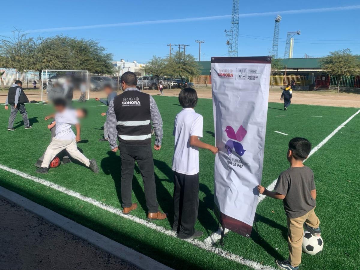 La SSPC Sonora fomenta en escuelas y colonias la práctica deportiva y, con ello, la sana convivencia, así como la salud física y mental de las y los menores de edad mediante partidos de futbol.